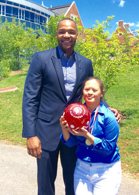 Alicia, 31, spoke before heading to the 2015 Special Olympics World Games in Los Angeles. She first got involved with sports at age 12, and recalled that “I was very proud of myself” after winning her first medals. She continued to compete, adding events and specialties along the way, and says now that “participating in all different sports made me strong, confident, disciplined and developed physically.” When I asked how she could fit in so many different sports, as well as working in child care development, she simply replied, “I tell myself if one can do it, so can I. … I believe that I am capable of reaching countless and limitless opportunities.” Alicia’s most proud when she has the opportunity to demonstrate that she can achieve various sporting milestones. Her technique is simple: “I start off slowly and gradually build up to the level required by the sports event which I compete in.”